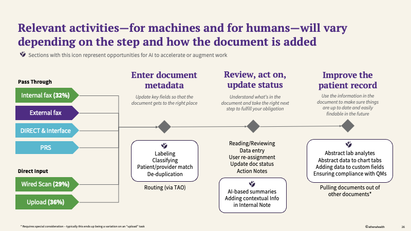 athenahealth’s Intelligent Document Services platform processes several million fax documents monthly across a variety of document types. Even as interoperability efforts claim to focus on data over documents, incoming documents are still a core part of most EHR workflows - workflows which have long been beset by manual inefficiencies, error-prone workflows, and overwhelming administrative burdens.